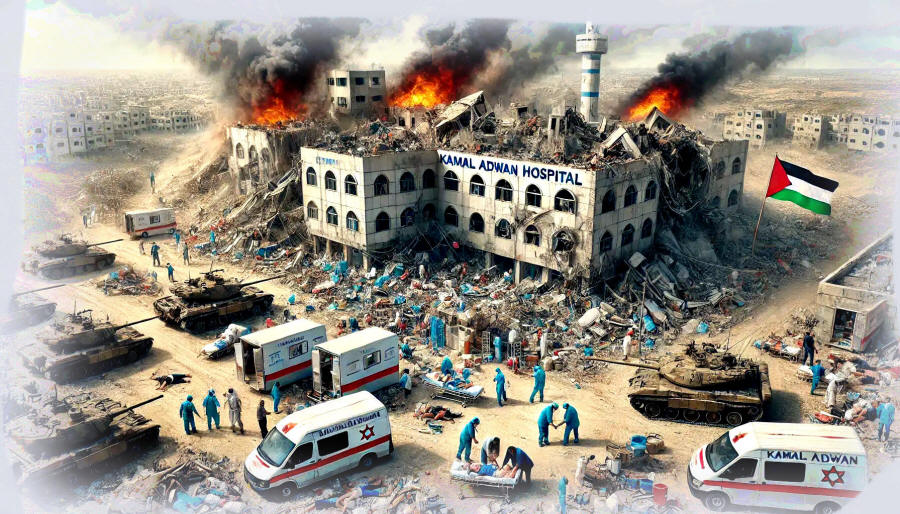 Mit Panzern und Drohnen zerstörte die israelische Armee unter anderem die Intensivstation, Stromgeneratoren, Krankenwagen und Sauerstofftanks des Krankenhauses. „Anstelle von Hilfe kommen Panzer, die das Krankenhaus bombardieren“, so Dr. Hussam Abu Safiya, der Direktor des Kamal Adwan Krankenhauses, in einer verzweifelten Videobotschaft. Einen Tag später wurde bekannt, dass Dr. Abu Safiyas Sohn Ibrahim, ein Teenager, bei den Angriffen auf das Krankenhaus getötet worden war.