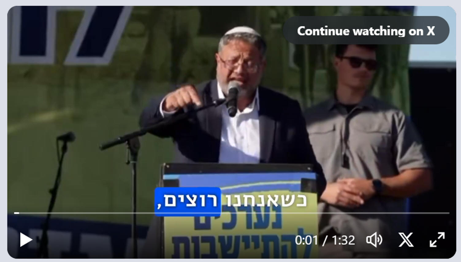 Er fügte hinzu: „Um ehrlich zu sein, ist mir klar, dass es eines Tages eine jüdische Siedlung im Gazastreifen geben wird ... wird es notwendig sein, Gaza wieder zu besetzen, so wie es unsere heldenhaften Kämpfer und Kommandeure seit einem Jahr tun“.