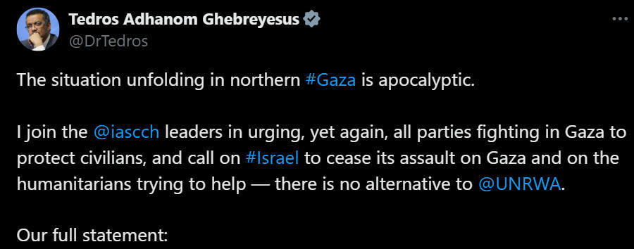 Statt den in dem Brief von Mitte Oktober geforderten 350 Lastwagen pro Tag, humanitären Pausen und einem Ende der Abriegelung von Nordgaza ist das Gegenteil der Fall: Das UN-Nothilfebüro Ocha meldet seit dem 6. Oktober eine verschärfte Blockade in Nordgaza, besonders um das Flüchtlingslager Dschabalia. Alleine in der vergangenen Woche habe es sieben „mass casualty events“ gegeben.