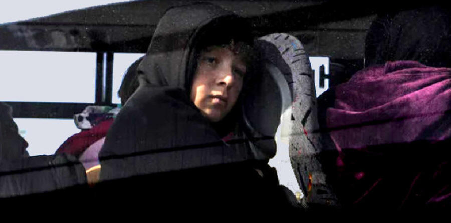 Ein palästinensisches Kind schaut am 6. Februar 2024 aus dem Fenster eines Busses, der vom Gazastreifen über den Grenzübergang Rafah nach Ägypten fährt. Abed Rahim KhatibDPAZUMAAPA
