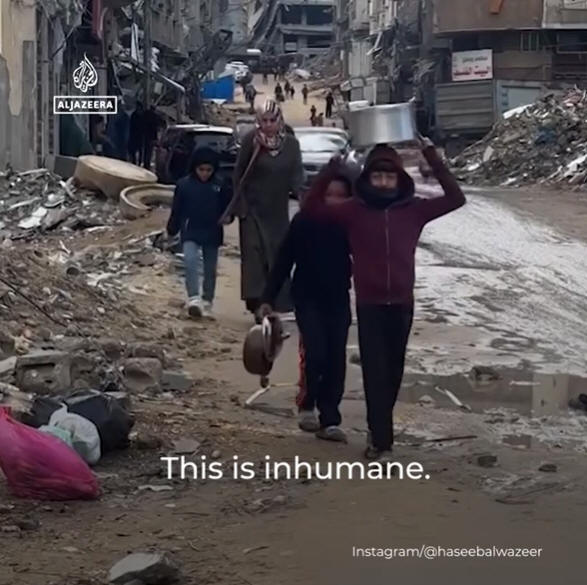 Nach Angaben der UN verschlechtert sich die Ernährungslage im zentralen und südlichen Gazastreifen „alarmierend“ - Bäckereien müssen wegen des Mangels an Weizenmehl schließen und nur 16 Prozent der Bevölkerung können die reduzierten monatlichen Lebensmittelrationen erhalten. Laut Abu Hasna von der UNRWA kommen täglich nur 30 bis 35 Lastwagen mit Hilfsgütern in Gaza an, „und das reicht nicht einmal, um ein Wohnviertel oder eine einzige Straße zu versorgen. Wie soll das für die 2,3 Millionen Bewohner des Gazastreifens ausreichen?“.