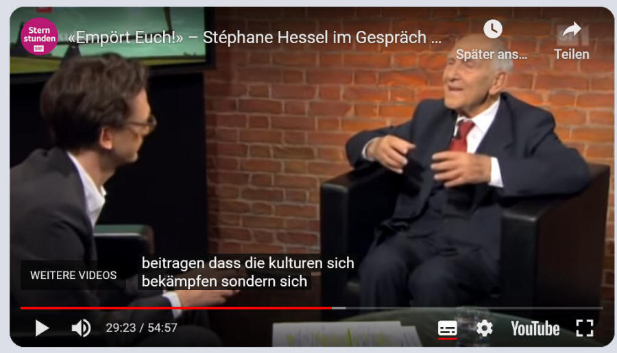 In der «Sternstunde Philosophie» spricht Hessel mit Juri Steiner: Ein Gespräch über Widerstand, Aktivismus und persönliches Engagement.