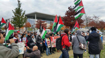 Berlin -Protestkundgebung gegen den Besuch des israelischen Kriegstreibers Benjamin