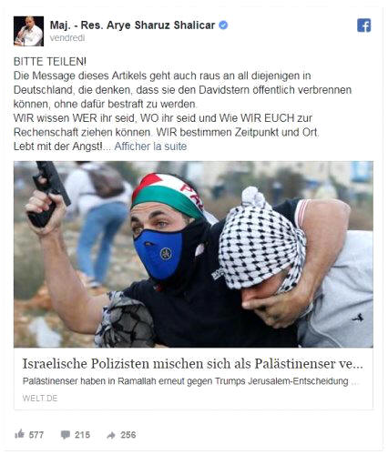 Kontaktadresse zur Verfügung: shalicar@idf.gov.il.