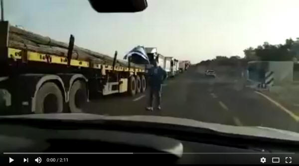 Das Video zeigt LKW-Ladungen mit Waren, die auf die