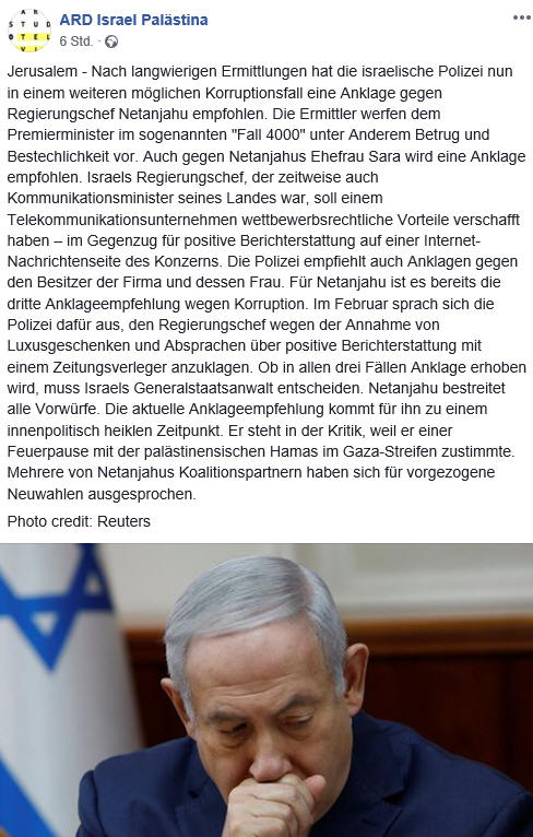 Verurteilung des Premierministers Benjamin Netanyahu. Seine