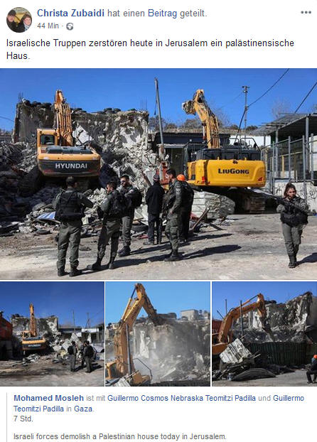 Eine andere Quelle sagt: "Sie weigerte sich, ihren Niqab abzunehmen, also schossen #israelische Kräfte und ließen sie verbluten!" Quelle