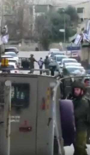 Als Reaktion auf Siedlerbeschwerden stieg am nächsten Tag eine Gruppe von Soldaten in das Haus von Eqneibi ein und verhaftete seinen 14-jährigen Sohn Amer Eqneibi. Das Video wurde aufgenommen, als die Soldaten das Kind wegnahmen: