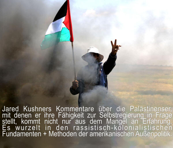 Jared Kushners Kommentare über die Palästinenser, mit denen er ihre Fähigkeit zur Selbstregierung in Frage stellt, kommt nicht nur aus dem Mangel an Erfahrung. Es wurzelt in den rassistisch-kolonialistischen Fundamenten und Methoden der amerikanischen Außenpolitik.