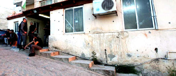 Einschusslöcher nach der Attacke auf das Hauptquartier der palästinensischen Sicherheitskräfte