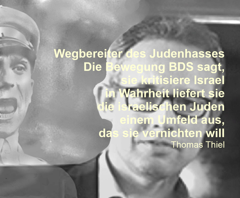 Wegbereiter des Judenhasses - Die Bewegung BDS sagt, sie kritisiere Israel – in Wahrheit liefert sie die israelischen Juden einem Umfeld aus, das sie vernichten will - Thomas Thiel - Die Debatte über die Israel-Boykott-Bewegung BDS geht seltsame Wege. Es scheint, als habe die Bundestagsresolution, die den BDS als antisemitisch verurteilt, die Lager nur weiter gespalten. Neues Öl hat jetzt ein Artikel des „Spiegels“ ins Feuer gegossen, der zwei israelfreundliche Organisationen verdächtigt, Bundestagsabgeordnete nach dem Masterplan Benjamin Netanjahus unter Druck zu setzen.