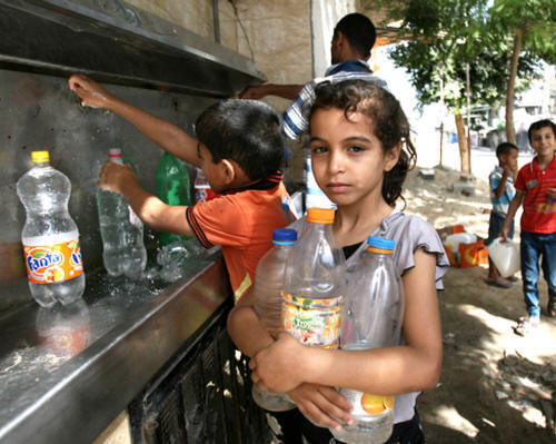 Wenn beispielsweise eine Krankenhaustoilette gespült wird, sickert sie unbehandelt durch den Sand in den Grundwasserleiter. Dort verbindet es sich mit Wasser, das mit Pestiziden von Farmen, Schwermetallen aus der Industrie und Salz aus dem Meer gespeist wird. Es wird dann durch kommunale oder private Brunnen wieder hochgepumpt, mit einem kleinen Teil des aus Israel bezogenen Süßwassers verbunden und in die Wasserhähne der Menschen zurückgeführt. Dies führt zu einer weit verbreiteten Kontamination und nicht trinkbarem Trinkwasser, von dem etwa 90% die Richtlinien der Weltgesundheitsorganisation (WHO) für Salzgehalt und Chlorid übertreffen.