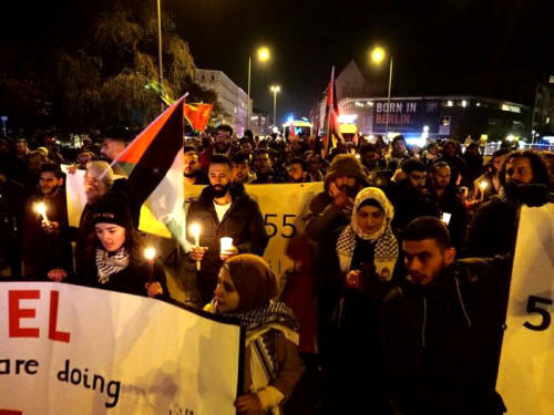 Mehrere palästinensische und arabische Gemeinschaftsorganisationen in Berlin forderten die Demonstration. Die Demonstranten trugen Schilder und Transparente, die die Freiheit der inhaftierten palästinensischen Linken, der feministischen Führerin Khalida Jarrar und des libanesischen arabischen Kämpfers für Palästina, Georges Ibrahim Abdallah forderten. Quelle und mehr >>>