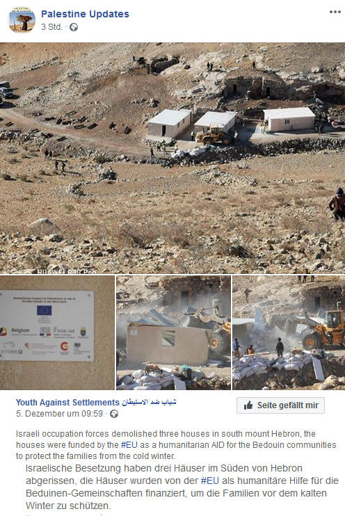 Es gibt keine ethnischen Säuberungen und Israel ist die einzige Demokratie im Mittleren Osten. Mit groben Pinselstrichen zeichnen unsere Medien und etablierten Politiker ein eher idyllisches Bild von Israel. Wie aber soll man es nennen, wenn israelische Zivilbeamte, geschützt von Soldaten, mühsam verlegte Wasserrohre im Westjordanland mutwillig zerstören? Etwa Demokratie? Ganz offensichtlich sollen Palästinenser systematisch aus ihren Dörfern vertrieben werden — ganze Landstriche wären im Ergebnis palästinenserfrei. Interessant ist auch, wer vermutlich die Zeche für diese desaströse und unmenschliche Politik wird zahlen müssen: die EU, die das Überleben der Bewohner aus Steuergeldern sichern muss.