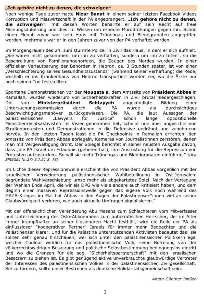 Palästinensische Mission - 08.07.2021