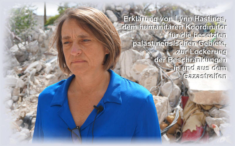 Erklärung von Lynn Hastings, dem humanitären Koordinator für die besetzten palästinensischen Gebiete, zur Lockerung der Beschränkungen in und aus dem Gazastreifen
