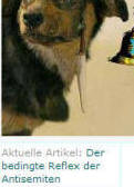 12.11.2006 - Ein Leser kommentiert: Help! Broder kämpft für die "Jungle World" - Warum rettet Henryk M. Broder dieses antideutsche Schmudelblättchen nicht mit einer Spende seiner üppigen Honorare, die er für seine diversen Auftritte erhält, wie zum Beispiel bei der Else-Lasker-Schüler-Gesellschaft in Zürich? Liegen sie doch anscheinend auf einer Linie mit ihm. Niemand außer HMB und diesen extremistischen und antiislamischen Gesinnungsgenossen weint dieser Postille eine Träne nach. Broder könnte doch mit dem überragenden "Chefredakteur" der Seite, die Andersdenke an den Pranger stellt und zun denunziatorischen Hetzmails aufruft, "honestly concerned", Samuel Laster ein weiterer herausragender "Journalist" von der "jüdischen", Ralf Schröder, alias Leo Ginster und dessen Koautoren Ingo Way sowie den Mitgliedern seiner sogenannten Achse des Guten mit dem Klingelbeutel durch die Republik tingeln und sammeln. Vielleicht mit Transparenten auf denen Sprüche der Antideutschen stehen: "Von der Saar bis an die Neiße. Bomben drauf und weg die Scheiße" Ralf Schröder wird das vielleicht gerne mit Leo Ginster zusammen im Einheitsschritt tragen.