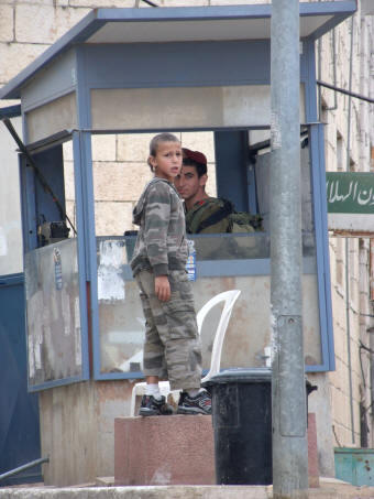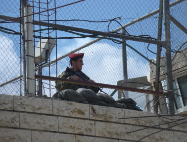 Bild links - Soldaten bewachen eine jüdische Siedlung im Westjordanland.