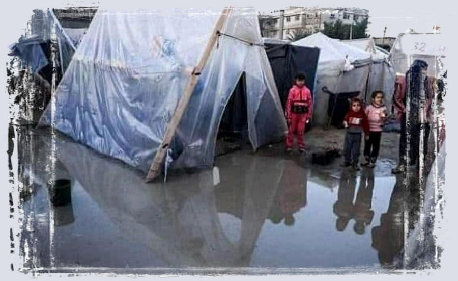 Fotos vom Leid der Vertriebenen in Zelten in den Lagern im zentralen Gazastreifen als Folge der schweren und anhaltenden Regenfälle im Gazastreifen |