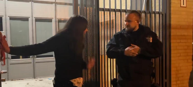 Während die Besetzer – in Absprache mit dem Präsidium – den Hörsaal am Abend verließen, diskutierte die Präsidentin Bettina Völter mit angerückten Polizeikräften. Die Szene, die auf einem Video zu sehen ist, das in sozialen Medien kursiert, wirkt wie Slapstick. »Wir brauchen Sie nicht. Es tut mir schrecklich leid, wir brauchen Sie nicht«, erklärte die Präsidentin am Eingang der Hochschule einem Polizisten. »Ich bin die Präsidentin der Hochschule. Ich habe Hausrecht. Ich habe Sie nicht gerufen«, fügte sie hinzu. Die Einsatzkräfte in voller Montur beharren auf dem Einsatzbefehl und sagen, dass sie niemanden ins Gebäude lassen. Völter erwidert: »Hier kommt ja auch niemand rein. Wir erleben es als bedrohlich, dass Sie vorn am Eingang stehen.« Darauf der Polizist: »Die Polizei ist für sie also bedrohlich? Ist ja Wahnsinn.«