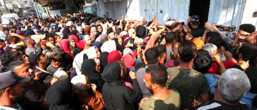 Vor Ort werden die Bilder von einer Vielzahl von Geräuschen begleitet. Dazu gehört das mittlerweile tägliche Ritual, dass sich die Menschen in den nahe gelegenen Bäckereien um Brot streiten, weil die Lebensmittelvorräte schwinden, der Zugang zu kommerziellen Gütern fast vollständig unterbrochen ist und die Einfuhr humanitärer Hilfsgüter weiterhin durch lähmende Restriktionen behindert wird. Erst letzte Woche sind eine Frau und zwei Mädchen vor einer Bäckerei erstickt, als ein Streit ausbrach, weil es nicht genug Brot für alle gab.