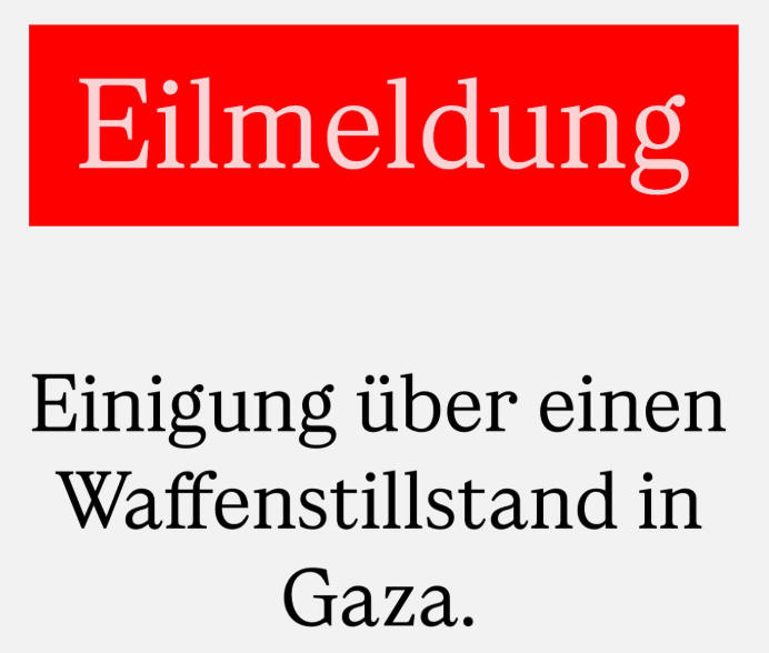 „Aufgrund des starken Drängens von Premierminister Benjamin Netanyahu hat die Hamas in letzter Minute ihre Forderung nach einer Änderung der Stationierung von IDF-Truppen im Philadelphi-Korridor zurückgezogen. Einige Punkte des Rahmenabkommens müssen jedoch noch geklärt werden, und wir hoffen, dass die Details heute Abend festgelegt werden. Quelle