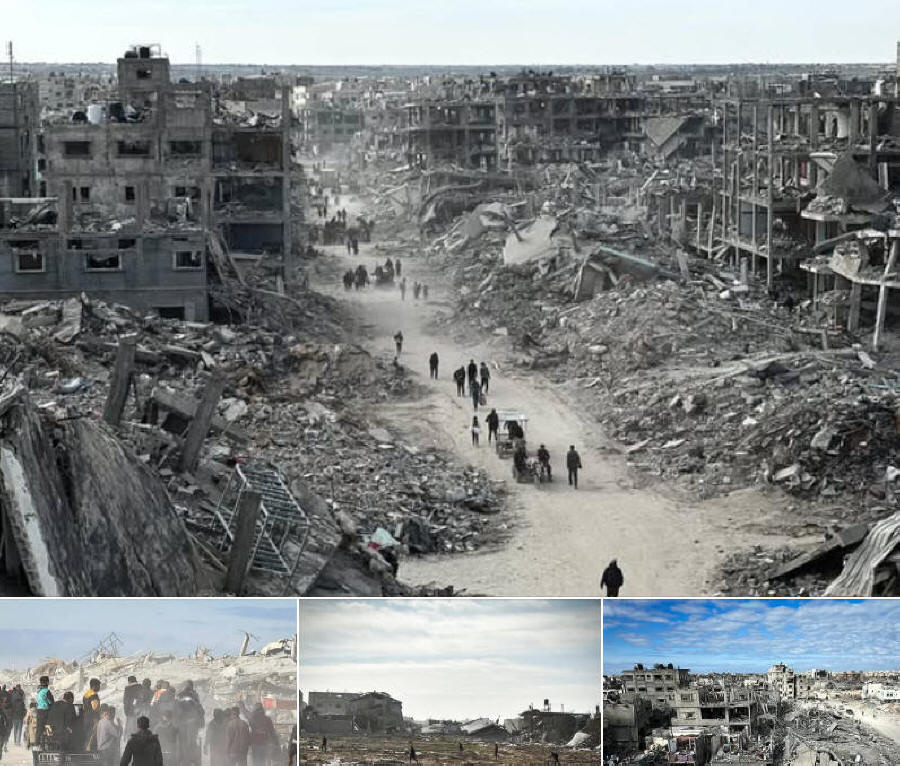 nachdem sich die israelischen Kolonialtruppen nach dem Waffenstillstandsabkommen zurückgezogen haben. Bei den völkermörderischen Angriffen Israels wurden schätzungsweise 92 % der Wohneinheiten zerstört oder beschädigt.