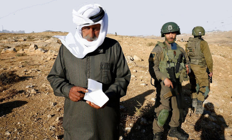 In der Praxis sind die Palästinenser in den südlichen Hebron-Bergen auf einen Radius von 100 Metern um die Gemeindezentren beschränkt, um ihre Herden zu hüten, während die Hirten der Siedler ihr Vieh auf privatem palästinensischem Land weiden lassen, das mit Weizen und Gerste bepflanzt ist.